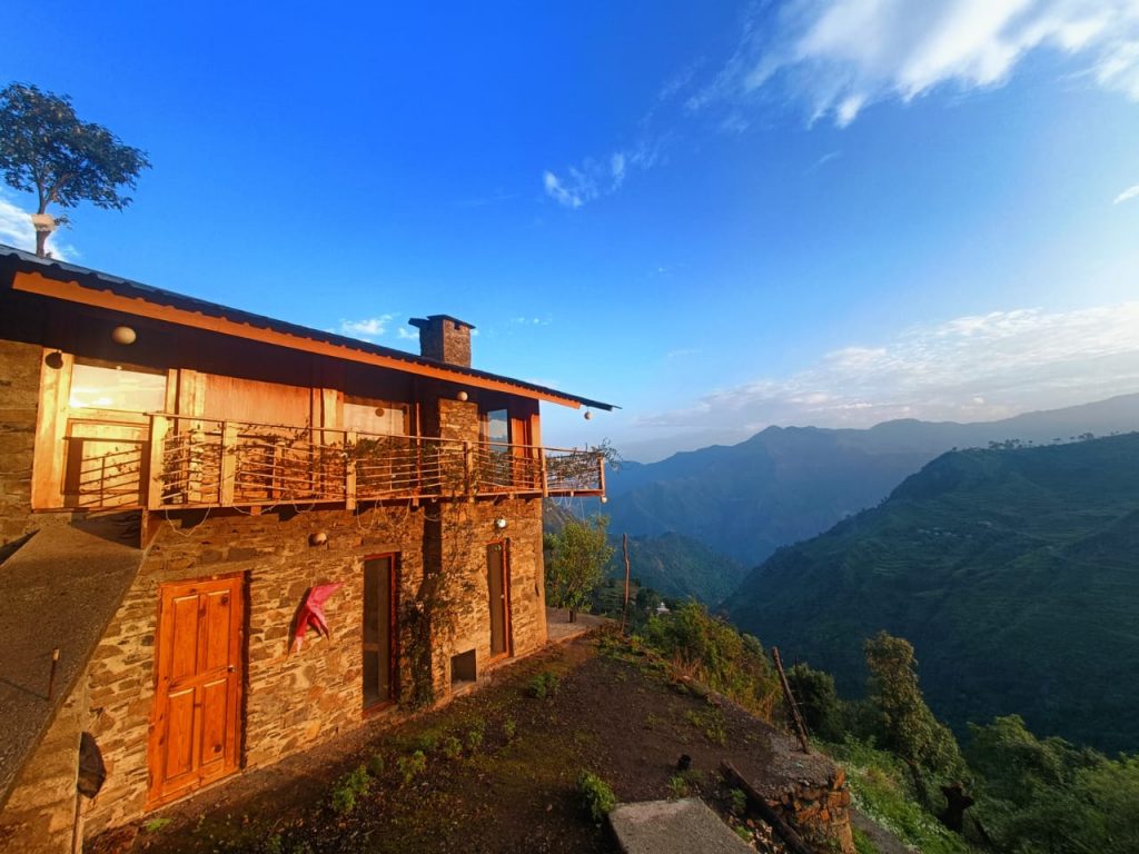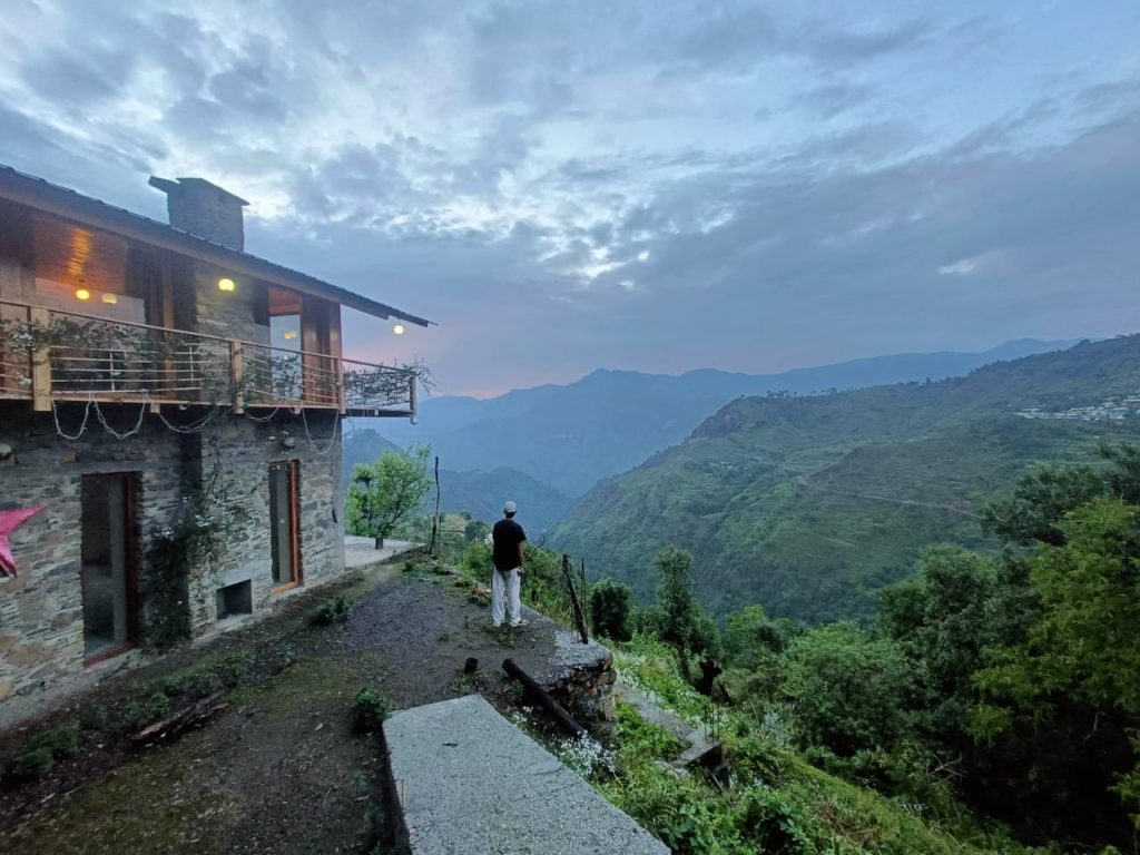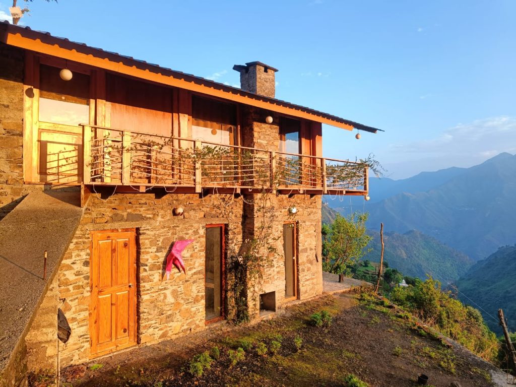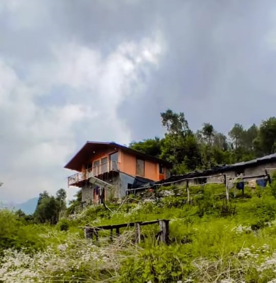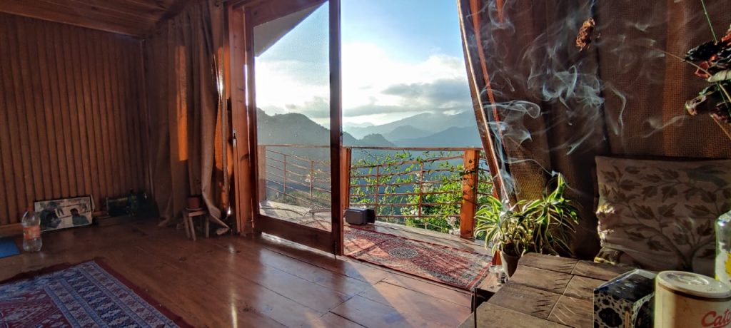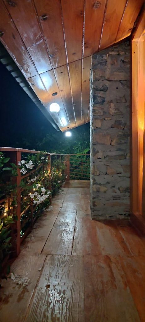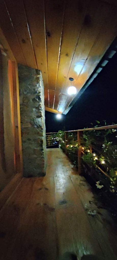 There’s already an old stone house in the corner of the plot with nothing but wooden beams holding up the roof. We thought of making this our little “Travelers Inn”.